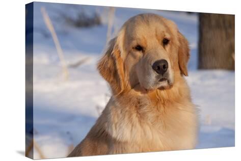 Golden Retriever, Female, Portrait, in Snow at Edge of ...
